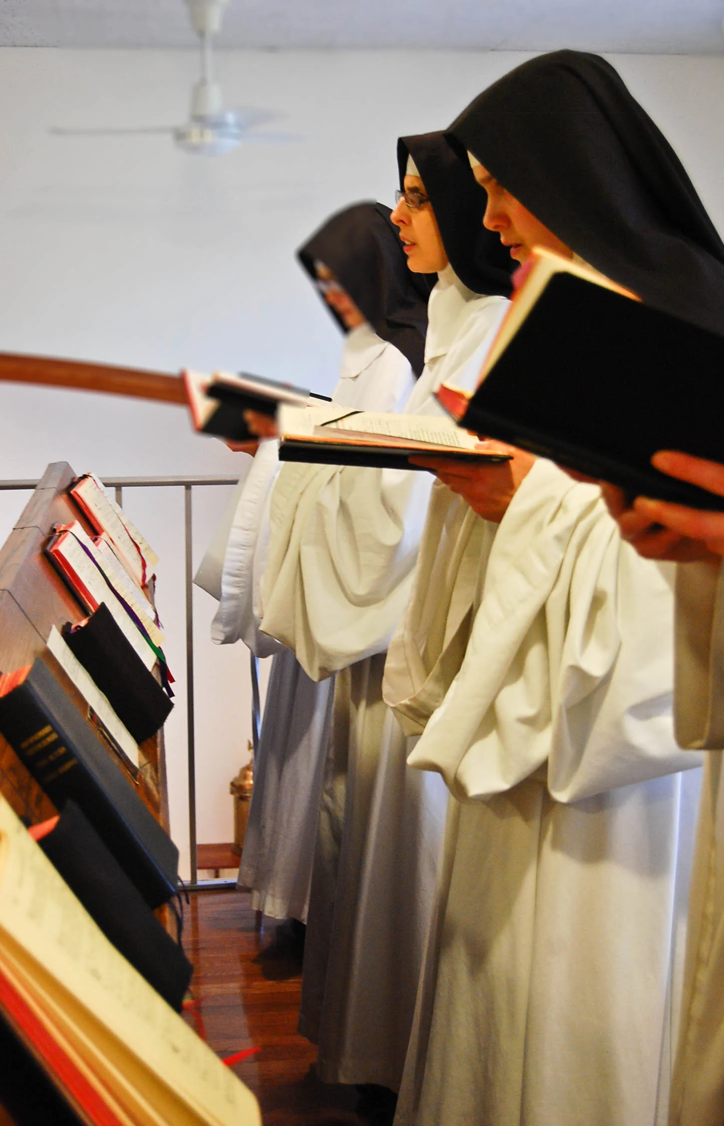 “Domine, labia mea aperies…O Lord, open my lips, and my mouth will declare Your praise.” The first words of the nun’s day are the beginning words of Matins, sung in beautiful Latin chant. Though normally in melody in the other Offices of the day, for Matins all is mercifully sung on a single note only, as each sister’s voice slowly warms up in the course of the hour-long Office. Sung while much of the world still sleeps, it signifies the watchfulness spoken of in Our Lord’s parable of the wise virgins, who keep watch for when the Bridegroom will return.